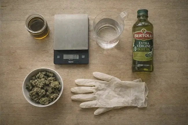 Om THC olie te maken heb je een aantal specifieke benodigdheden nodig. Het is verstandig om alles klaar te leggen voordat je begint. Zo verloopt het proces soepel en voorkom je fouten halverwege.
